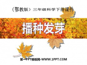 关键词:播种发芽教学课件,鄂教版三年级下册科学PPT课件下载,三年级科学幻灯片课件下载,播种发芽PPT课件下载,.PPT格式;