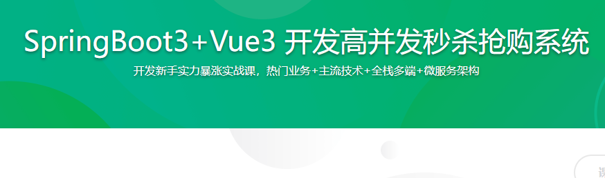 作为开发新手,入行、实习、转行、求职、没有能拿得出手,让面试官信服的实力作品? 本课程采用先进的微服务架构,主流的前后端技术SpringBoot3+Vue3,从0到1带你全流程开发一个热门的高并发秒杀抢购三端(移动端、PC端、公众号)系统,并配套精美的UI界面,最终发布上线。让你实力迅速暴涨,收获一个极具代表性和竞争优势的个人作品,助你在求职面试中脱颖而出。