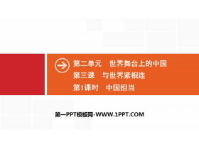 关键词:人教版九年级下册道德与法治PPT课件免费下载,与世界紧相连PPT下载,世界舞台上的中国PPT下载,中国担当PPT下载,.PPT格式;