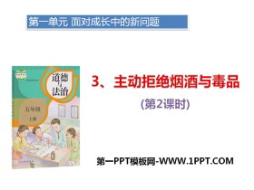 关键词:人教版五年级上册道德与法治PPT课件免费下载,主动拒绝烟酒与毒品PPT下载,面对成长中的新问题PPT下载,.PPT格式;