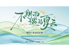 蓝绿动感曲线背景的“不期而遇的夏天”简约工作总结计划PPT模板下载