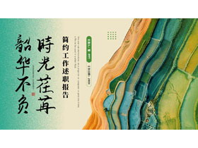 这是一套绿色梯田背景的“韶华不负时光荏苒”简约工作述职报告PPT模板,共20页;