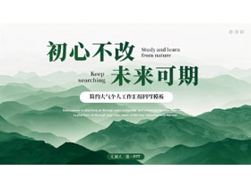 绿色清新群山背景的“初心不改未来可期”简约大气个人工作汇报PPT模板下载