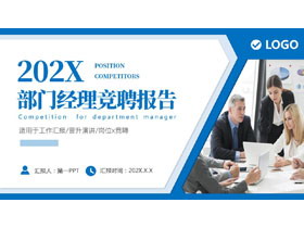 这是一套蓝色商务人士背景的部门经理竞聘报告PPT模板,共23页;