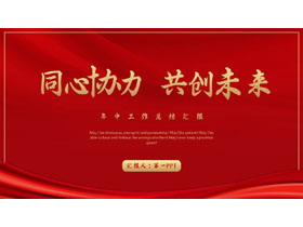 红色简约“同心协力共创未来”年中工作总结汇报PPT模板下载
