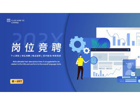 这是一套蓝色矢量办公剪切画背景的岗位竞聘PPT模板,共23页;