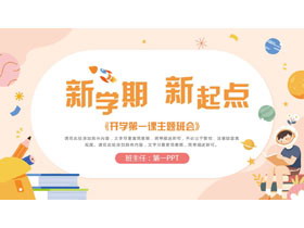 可爱卡通风格的“新学期新起点”开学第一课主题班会PPT模板下载