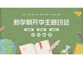 绿色卡通黑板风新学期开学主题班会PPT模板下载
