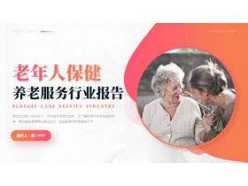 这是一套红橙渐变慈祥老人背景的老年人保健养老服务行业报告PPT模板,共19页;