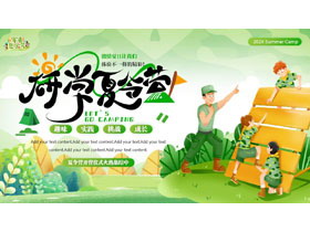 绿色清新卡通风格的研学夏令营开营仪式火热集结中PPT模板下载