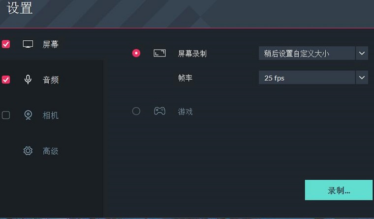 选择是否记录全屏,自定义屏幕区域或特定目标