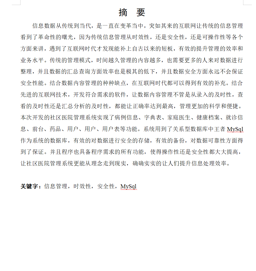 - 就诊信息管理:管理就诊信息和患者的病历等相关信息。