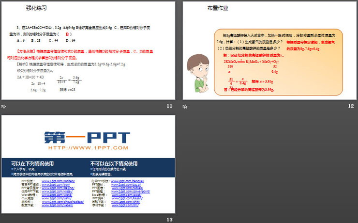 关键词:人教版化学九年级上册PPT课件免费下载,利用化学方程式的简单计算PPT下载,化学方程式PPT下载,.PPT格式;