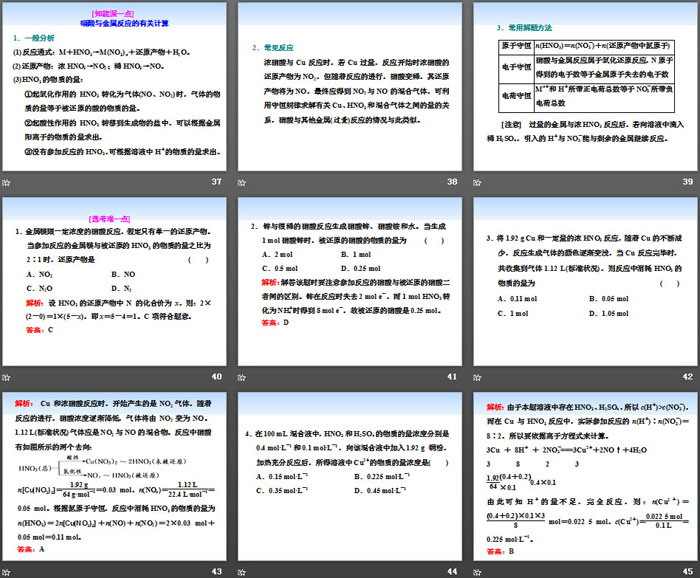 (1)反应通式:M+HNO3→M(NO3)n+还原产物+H2O。