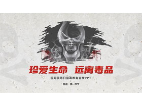 这是一套灰色骷髅头背景的“珍爱生命远离毒品”国际禁毒日禁毒教育宣传PPT模板,共20页;
