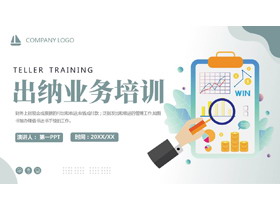 青色矢量剪切画风格的出纳业务培训PPT模板下载